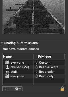 A while ago I moved my system to a SSD and use my old 3TB HDD as storage for pictures/music/movies. Somewhere in the process the file permissions got badly messed up, it could've been by using Time machine "wrong" (I simply hand-copied the files from the backup drive since I didn't want to fully restore a system).