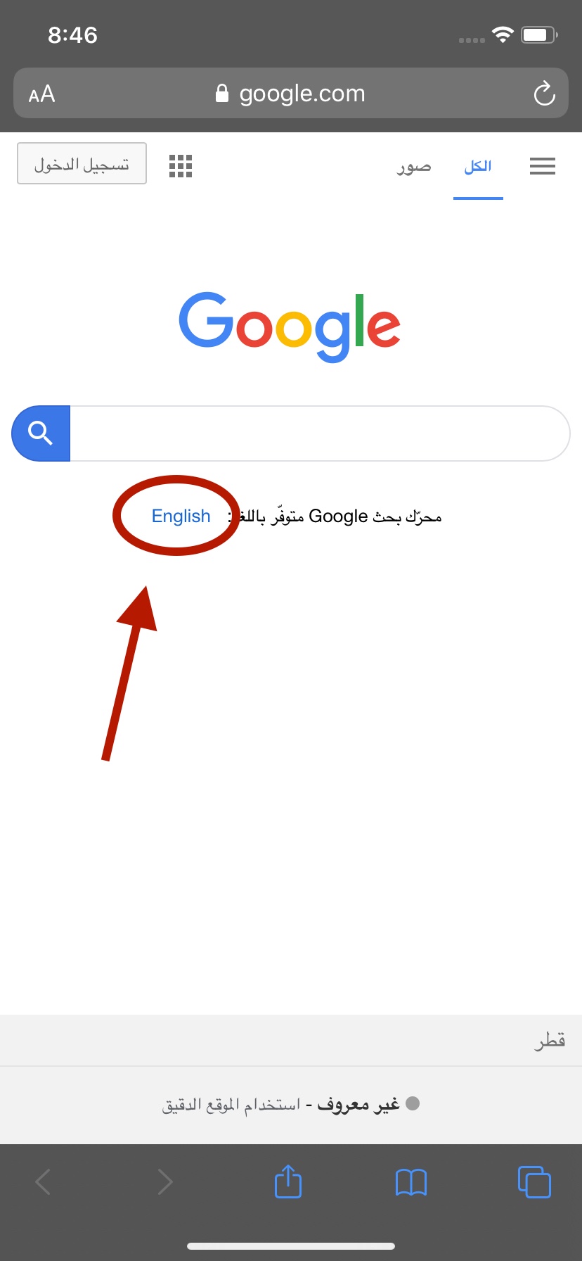 step 1: in browser (safari) go to new tab instead of selecting apple go to google, there you will see change to English icon. Change it to english