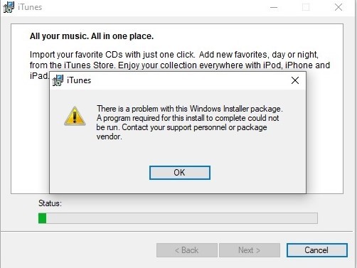 i was having a problem w itunes so i uninstalled , but when i wentto reinstall i got the following message