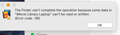 Error 36 is an input/output error. It can be caused by several things, such as: