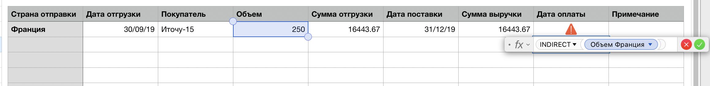 In this case, because the cell you want indirect to refer to is in the same table, you need only specify column and row. For example, using the western Latin alphabet: =INDIRECT(“D2”). Note the quotation marks. These indicate a string. if it is a different table, use the format: =INDIRECT(“Table::D2”). If it is on a different sheet (but still in the same document) the format becomes =INDIRECT(“Sheet::Table::D2”) where both Sheet and Table are the names assigned to each.