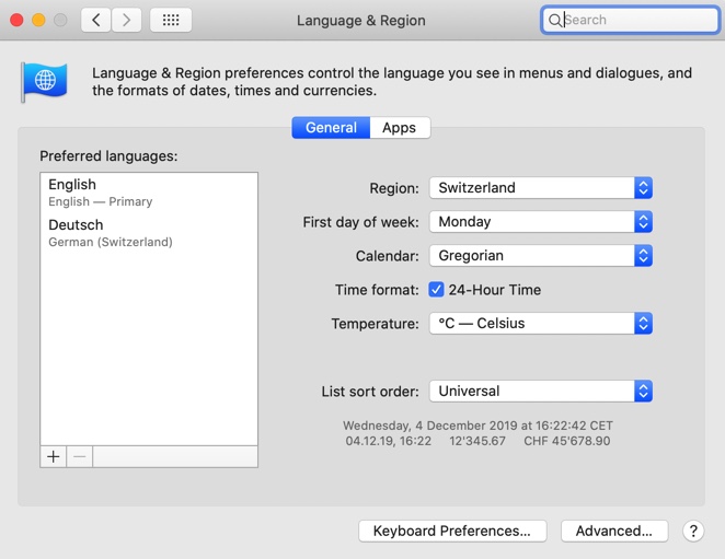 Under System Preferences, Language & Region English is the preferred language at the top. I also have German below English in the Language & Region settings.