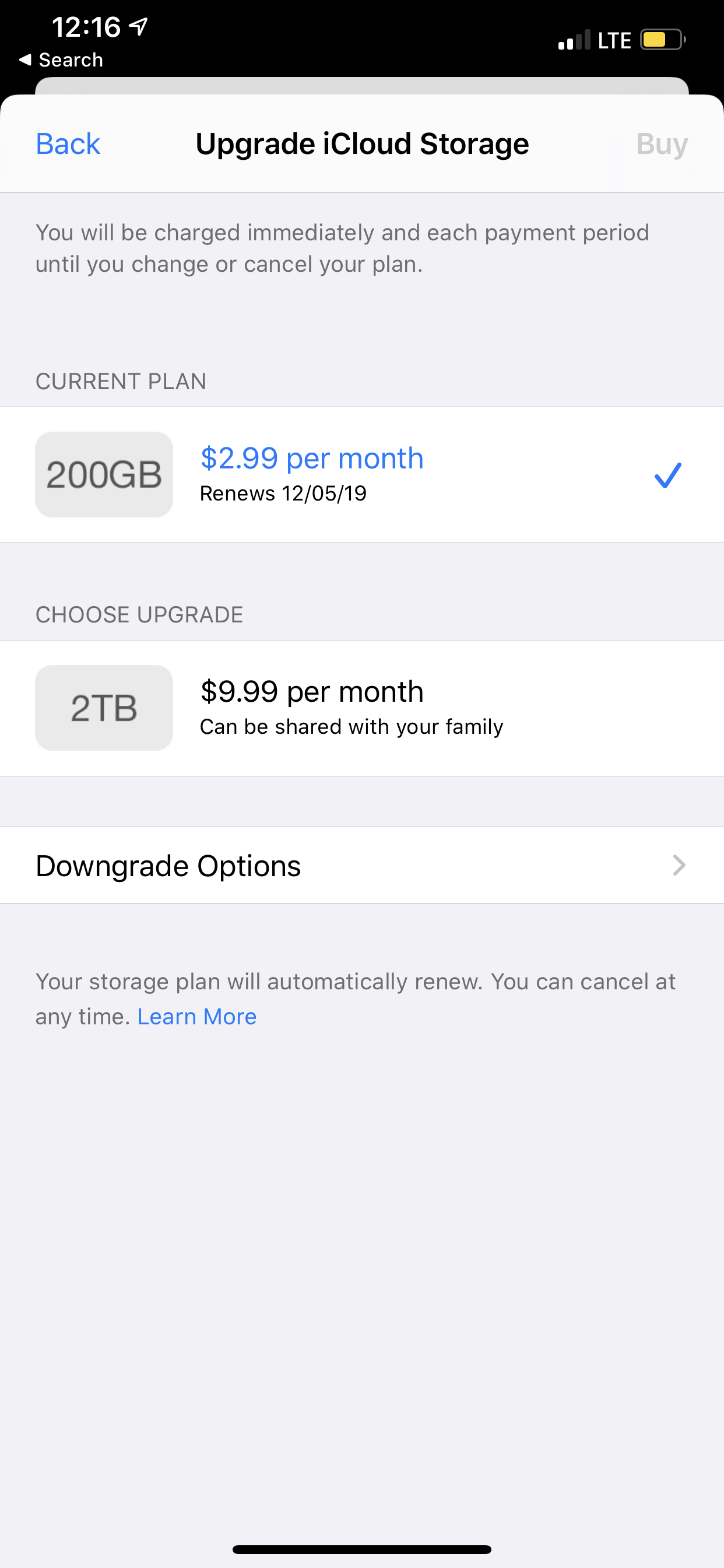 I tried to downgrade it always tells me I’m full or running out of space but when I look into it is not even half way used it’s been like this over a year and It makes no sense I been paying for nothing and it won’t let me downgrade