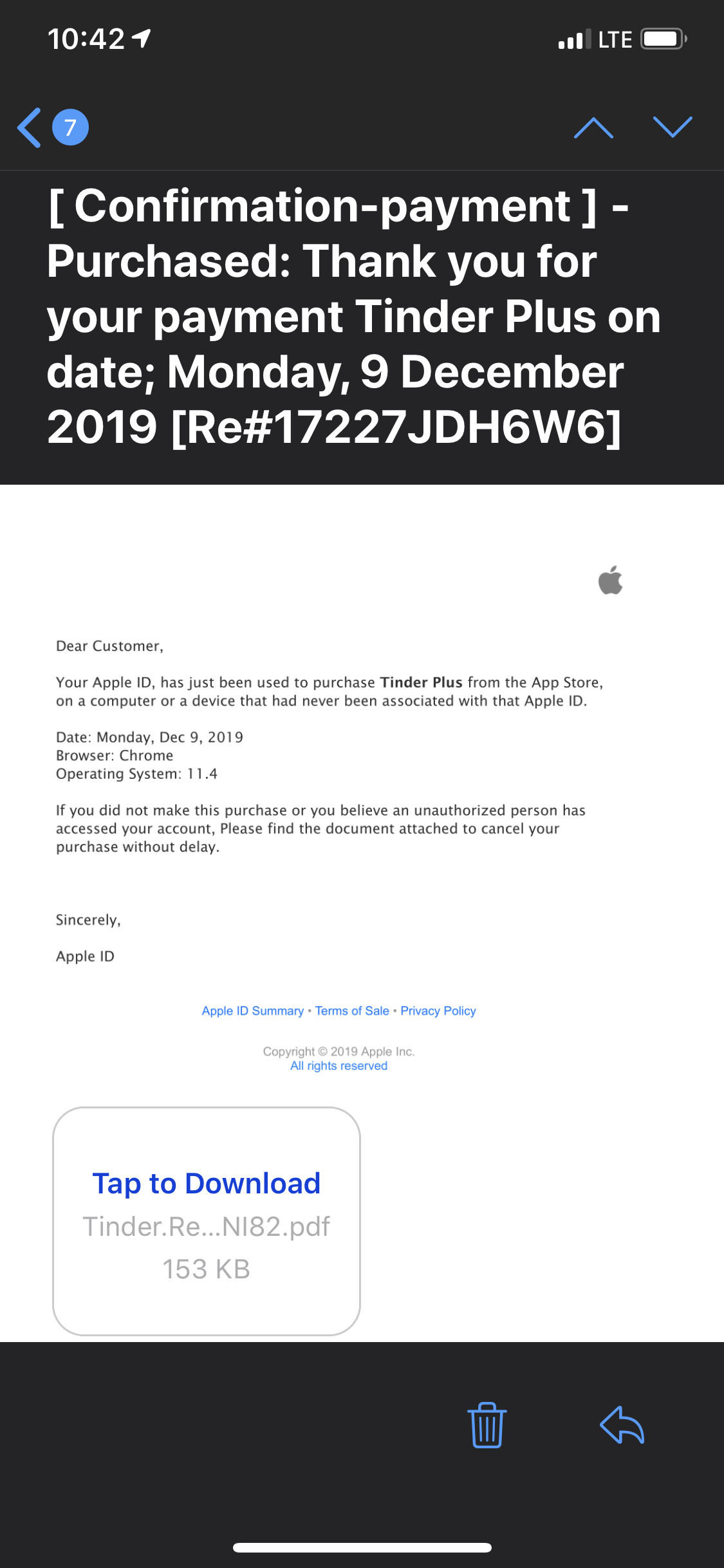 Send the e-mail to Apple as an attachment to a new e-mail before deleting it. You can forward as an attachment by going to Mail/Message/Forward as attachment. Or control - click on the email and select Forward as attachment. Make sure you send it as an attachment to a new email. If you just forward it, it will probably be rejected. You won’t receive a response.