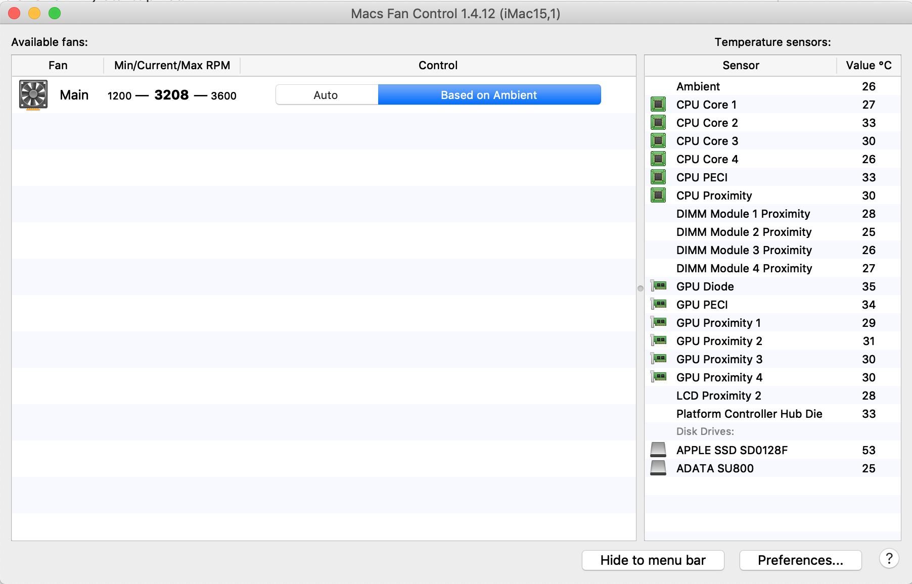 I'm not sure if it is associated, but one issue not anticipated when the IT shop replaced the HDD was that the fan controller for this model was built in to the Apple Fusion HDD, so the only workaround was to install a third party software (Macs Fan Control) to control the fan speed. References I've found to resolving issues with a runaway kernel task (incl. the forum link above) state that a failed or disconnected temperature sensor could be a cause; however, the temp sensors appear to be working fine, as confirmed by the Macs Fan Speed app: