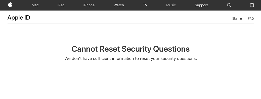 Getting following error while resetting security questions using iforgot.apple.com.