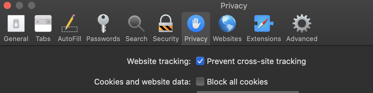 Website tracking: Uncheck the box beside "Prevent cross-site tracking".