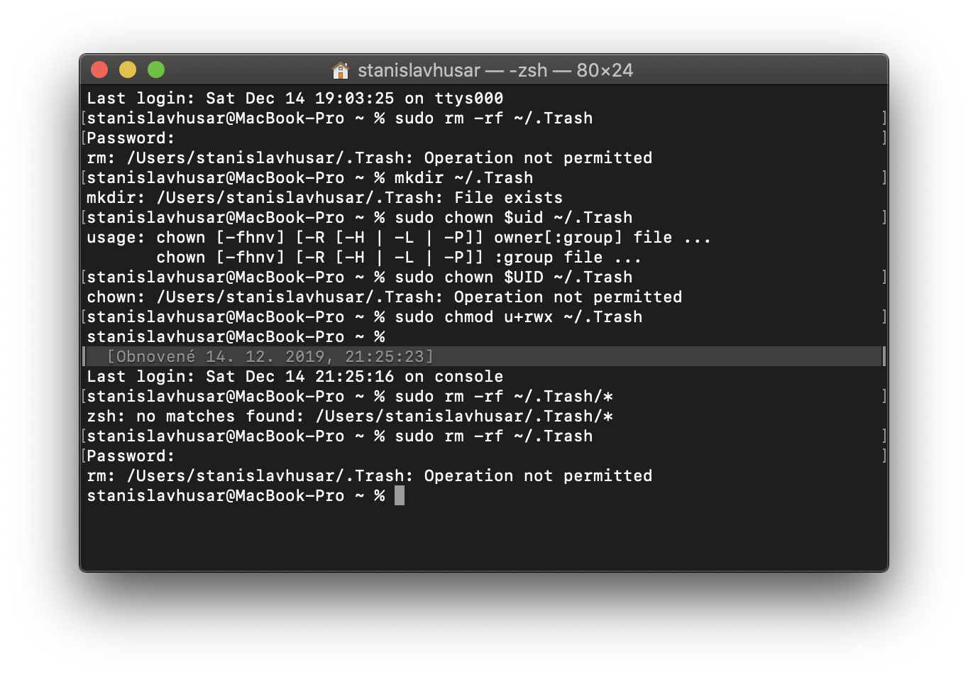 In standard multi-user mode, even with sudo I had no rights to .trash folder. (rm -rf, ls)