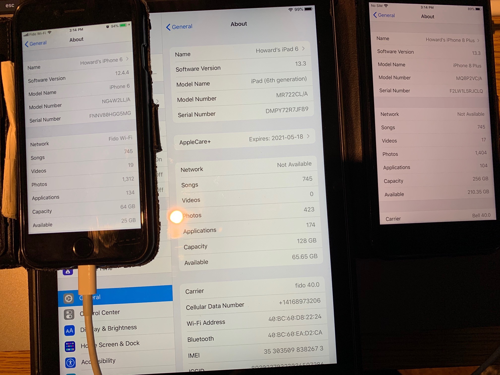 Left to right: iPhone 6 (12.4.4), iPad 6 (13.3), iPhone 8 Plus (13.3).