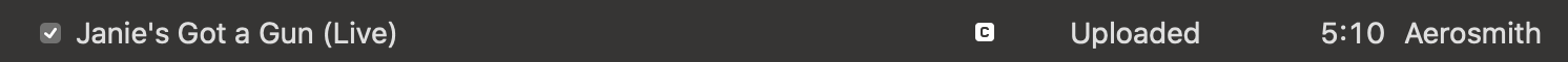 What does the "C" in the box next the iCloud status mean in Apple Music in Catalina?