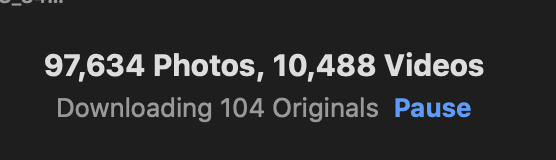 7 days thus far. Not bad given size of library. Face analysis complete. However, I still see that a relatively small number of files are showing up as needing to be downloaded. It's been on this number for three days now.