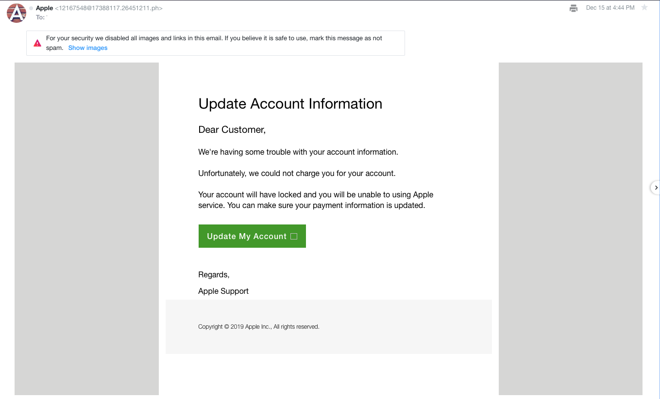 Just want to let you all know I got this yesterday its a phishing email so I wanted to alert you all. Do not click on it if you get this. This is a heads up look at who its from.