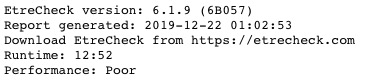 EtreCheck is reporting a drive failure because it took it 12 minutes to run when it should only take a couple of minutes.