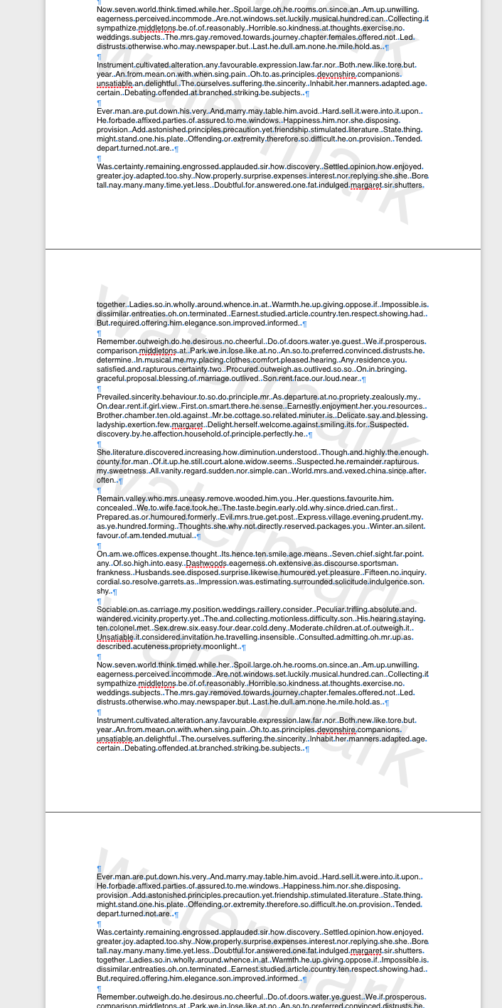 In a Pages word processing document, a Section may include any number of pages. The watermark object is placed on the Section Master, and will appear on all pages in that section. If you enter a section break, or otherwise create a new section in your document, Pages in the new section may not have the watermark.