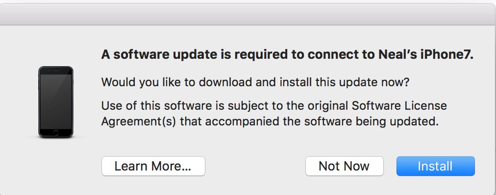 Mac tells me I must update software to connect my iPhone to iTunes. What software? IOS is uptodate, but macOS is High Sierra. Now what?