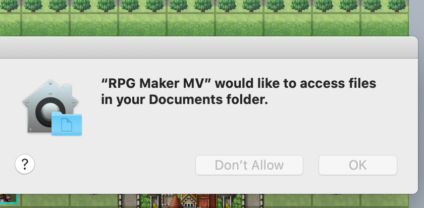 From the same program 'RPG Maker MV' it keeps asking me to allow to access files for everything I do even though I click yes everytime.