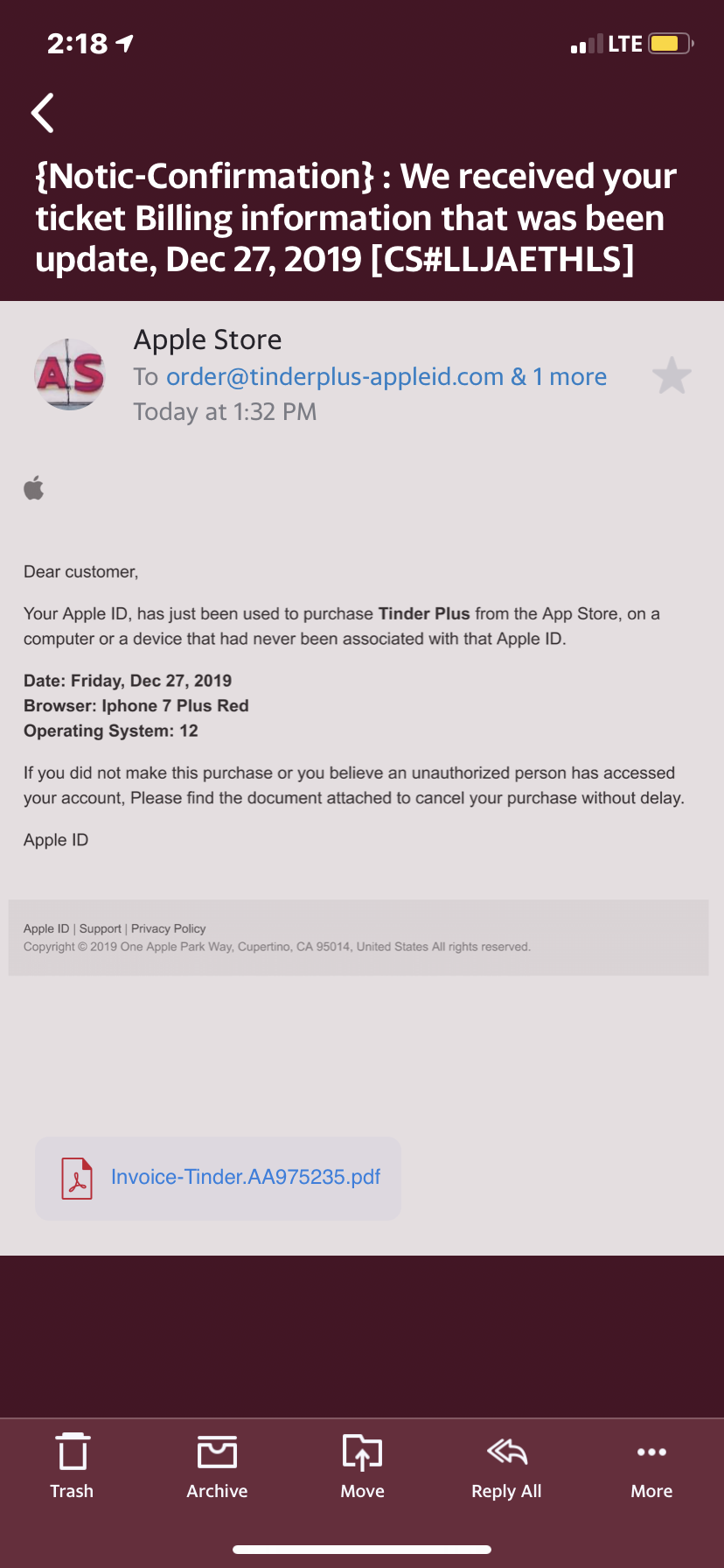If I get this email, what should I do. No money was taken from my account, but is there something I need to do to take my Apple ID off the purchase or just leave it be?