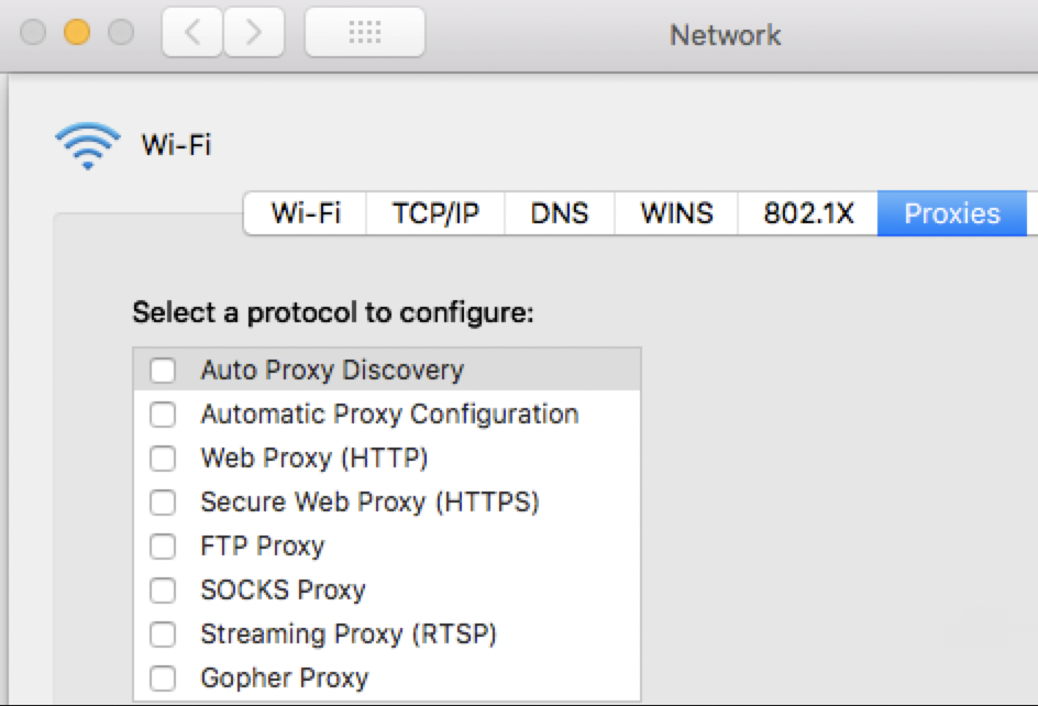 System Preferences > Network > Advanced > Proxies tab
