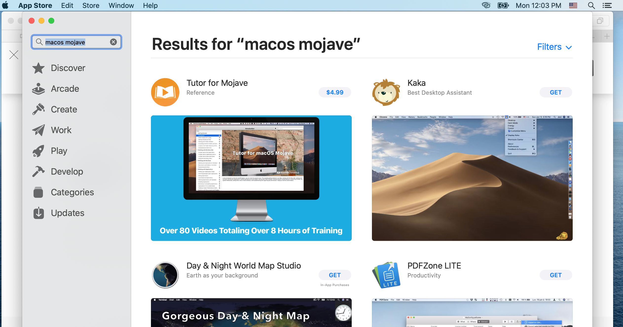 Do you actually see the Mojave download page in the App Store? This is the best I get when I search the App Store for it: