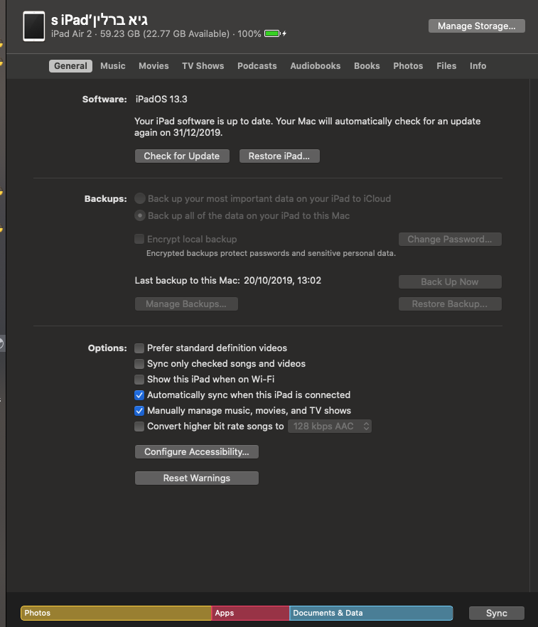 i recently installed macOS catalina, i am trying to backup my ipad through the finder, but the backups section in the ipad general tab is all grayed.