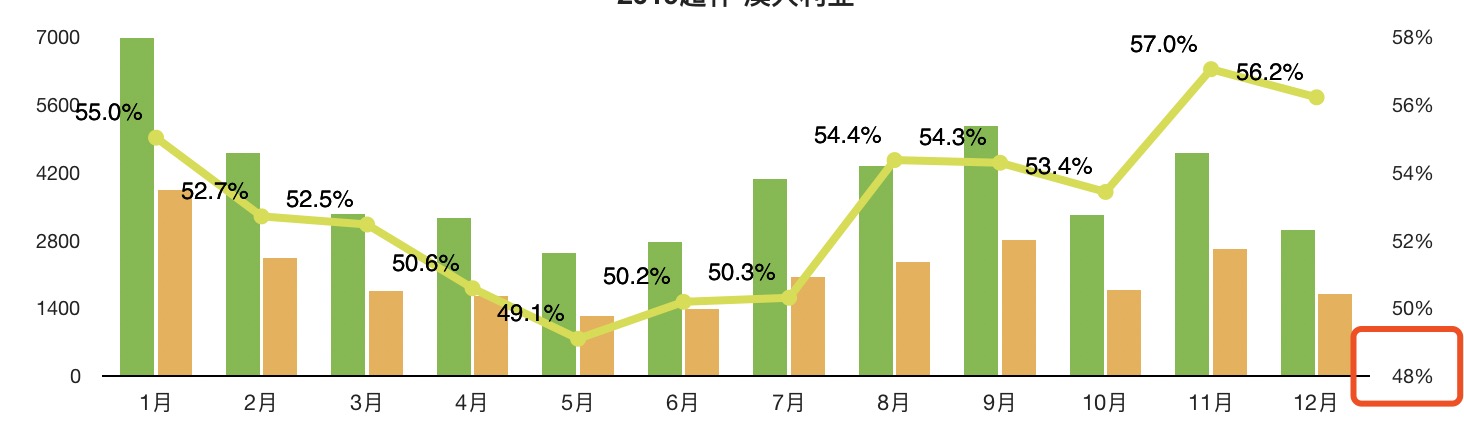 What purpose does having two Y axis scales serve in this chart? If both value series were graphed against the same scale, I suspect this issue would disappear.