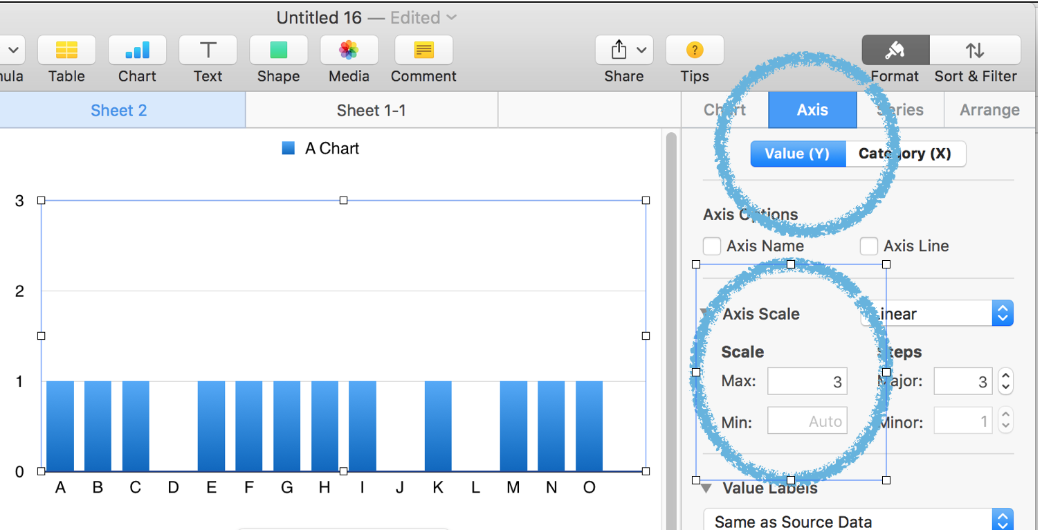 Since one scale applies to the green bars and the other to the orange bars, it's not surprising that the height of bars with similar values are not the same height.