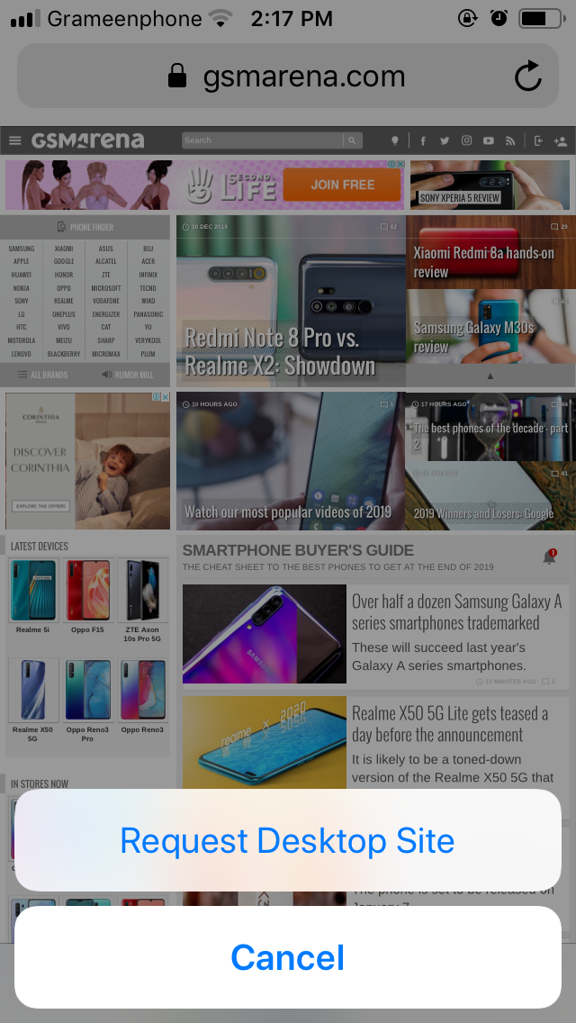 When I hold that it shows the option to request desktop version. But the website is already in desktop version.