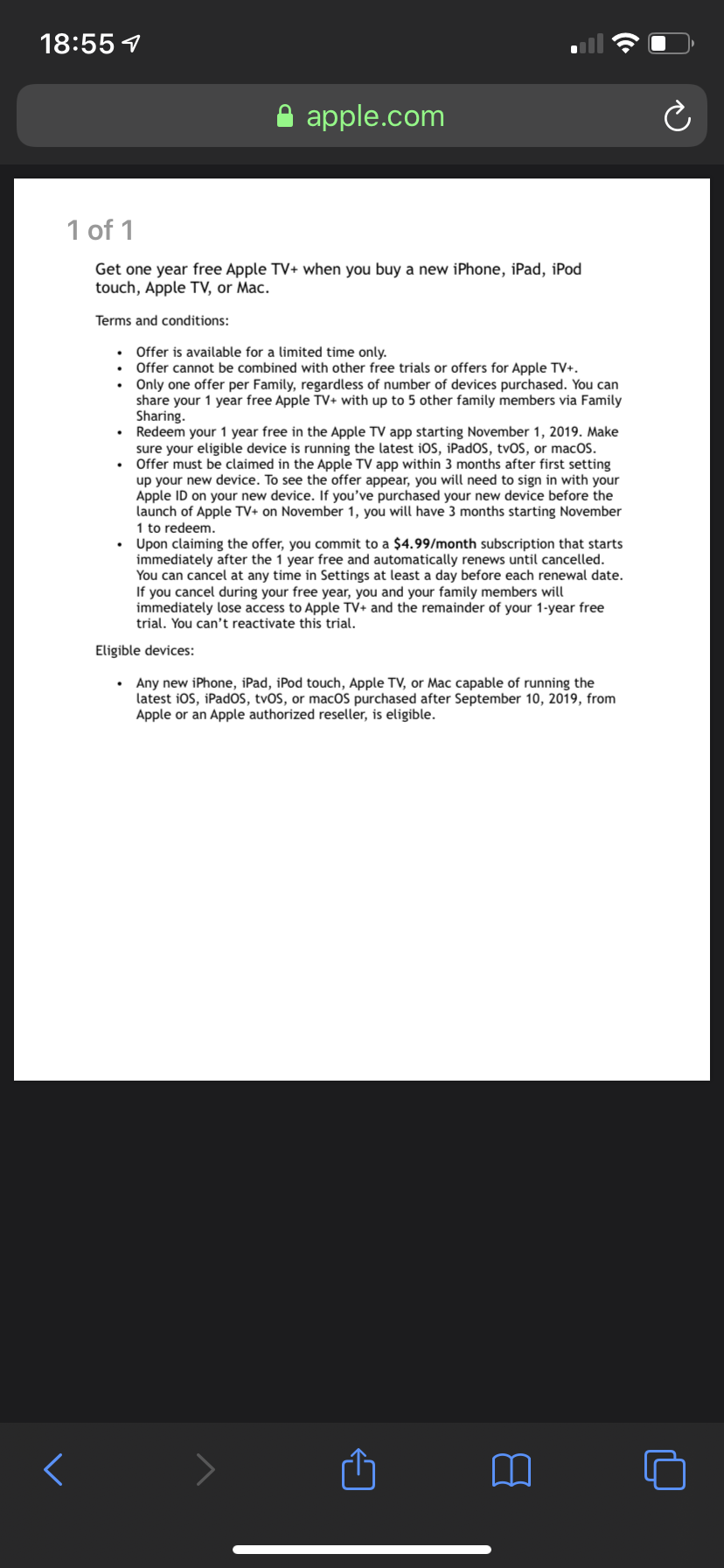 It is not a free TV, it is a subscription to Apple TV+, a service. See this for more information, Apple TV+ - Apple