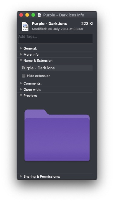 on that too. Drag the icon from the Preview section of the coloured folder to the top left icon on the info panel