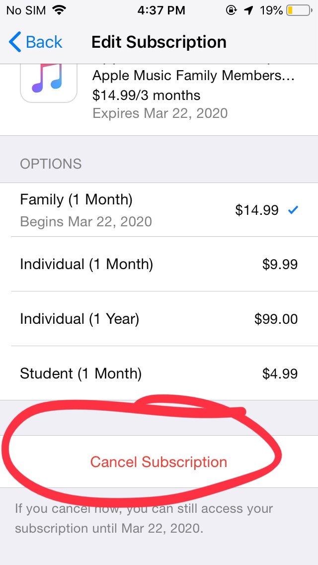 How do I cancel my Apple Music subscription on my iPhone XR?