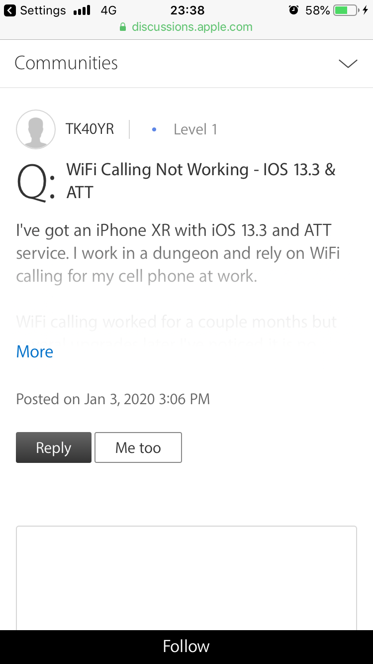 WiFi Calling Not Working - IOS 13.3 & ATT