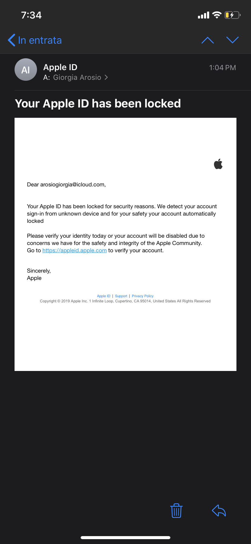 Send the e-mail to Apple as an attachment to a new e-mail before deleting it. You can forward as an attachment by going to Mail/Message/Forward as attachment. Or control - click on the email and select Forward as attachment. Make sure you send it as an attachment to a new email. If you just forward it, it will probably be rejected. You won’t receive a response.