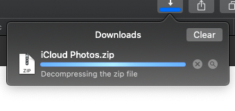 after selecting the photos i want to download to my computer from the iCloud it downloads and then gets stuck decompressing the zip file i wait and wait and it never stops decompressing i even check downloads and the file is still decompressing any ideas?