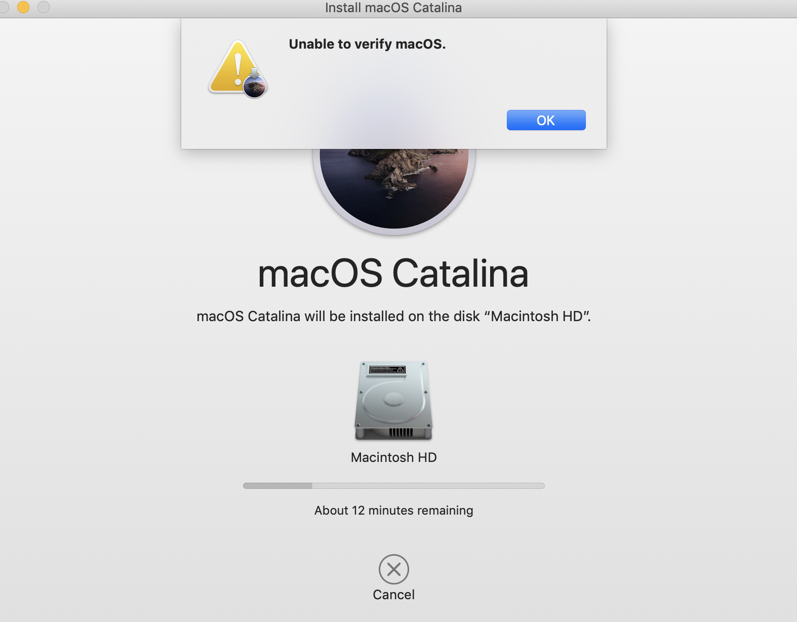 Unable to verify macOS message