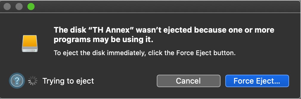 Ive just moved my photos library to an external SSD as it had got too big for my internal. However, now every time I go to eject it, It won't let me because its being used by the computer. I have no apps running but I've narrowed it down to these processes, that if I force quit - lets me eject it...
