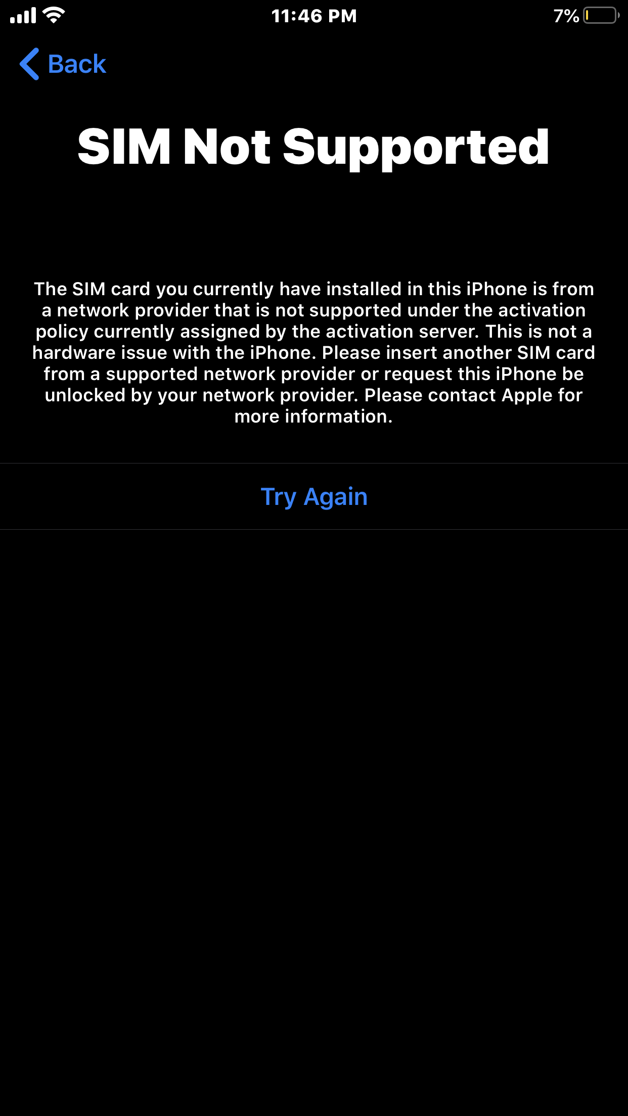 iPhone 7 plus lock (invalid sim card message)