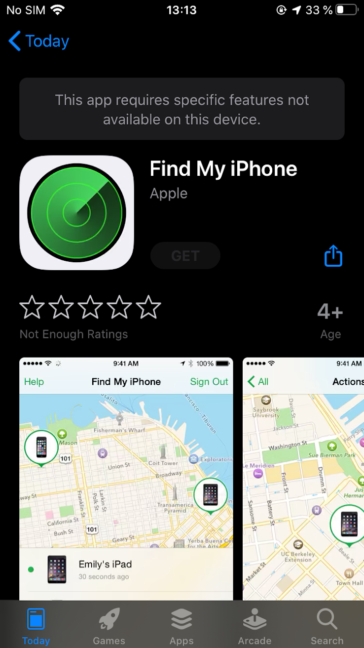 After the IOS13 update I removed the ‘Find My’ app. I want to restore it now, but I can’t find it in the AppStore. With Google I found it, but the dowload icon is grayed out and there is a message stating that ‘this app requires specific functionalities that are not available on this device’