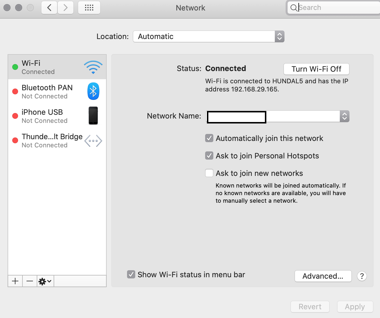System Preferences-->>Network and that will open up the window shown above. Make sure that Show Wi-Fi status in menu bar is selected.
