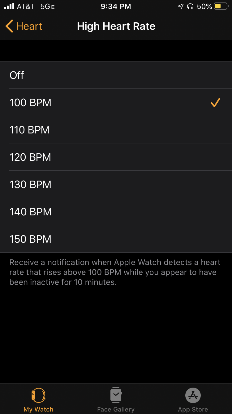 I’m looking to set my upper range heart rate alert to 85 bpm.