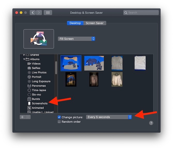 On an iMac Catalina how does one change the desktop backgrounds to a rotating series of photos from Photos. Previously I could have the desktop background rotating through an album but now I can only set one photo or I have to leave a number on the desktop which is messy!