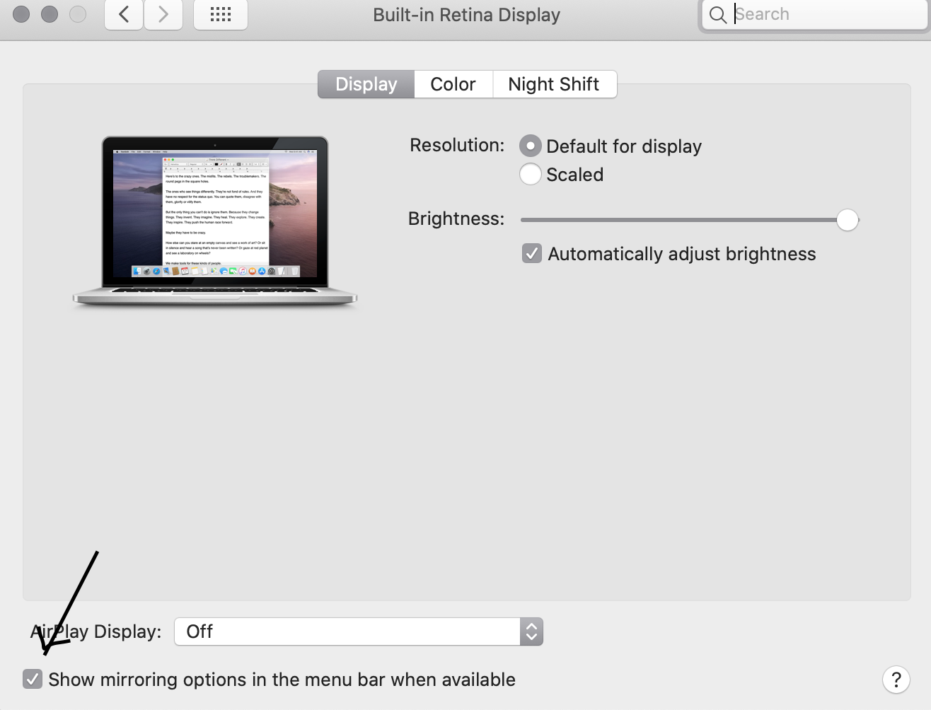 Choose the Display tab