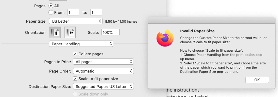For the past 45 minutes I have been trying to print a 13" by 19" image on my Epson Artisan 1430 from a Mac Mini running Catalina. No matter what I select it scales it down to letter size and prints that on the oversize paper (wasting Red River paper and Claria ink every time). I have tried every option I could find and I followed the instructions suggested by the printer driver. Nothing has worked. At first I thought the problem was with Photoshop, so I tried printing from Preview. Same problem, and apparently the same software. How can I print something full size on this paper? It used to just work.