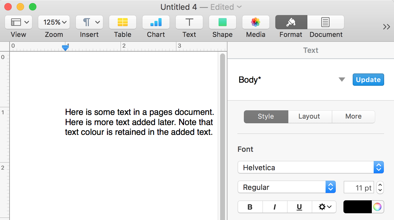 Click after the text to deselect it. If necessary, move the insertion point to the end of the existing text, and continue typing.