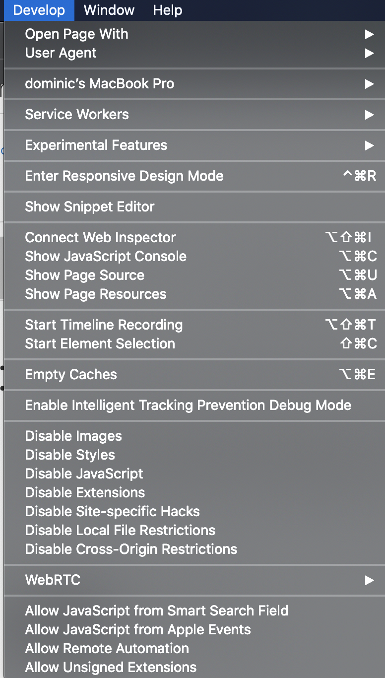 Safari has been quitting unexpectedly lately as well as service workers. I found in Develop that a lot of experimental items were checked and from similar questions, seemed safe to uncheck them as I am not a developer. WebRTC is also checked for legacy webRTC API. Do I need that? I do not recall checking anything in the develop category. I am using version 11.1.2. System too old to upgrade further.