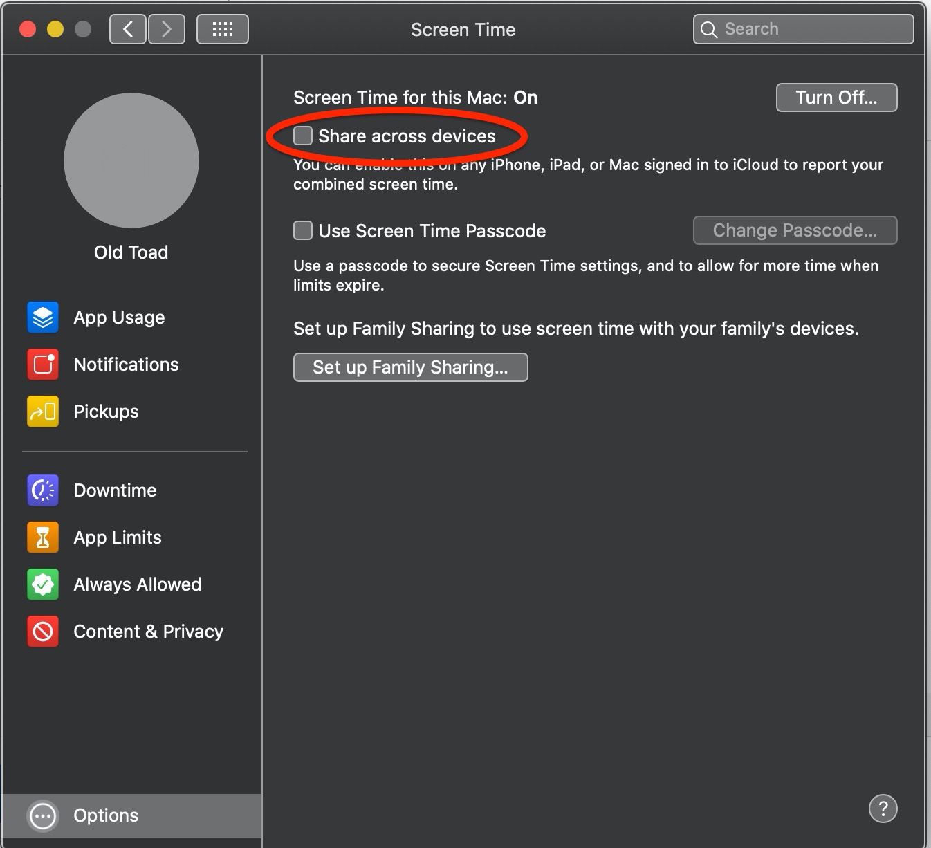 How to remove screentime from Catalina macbook but leave it on the iphone