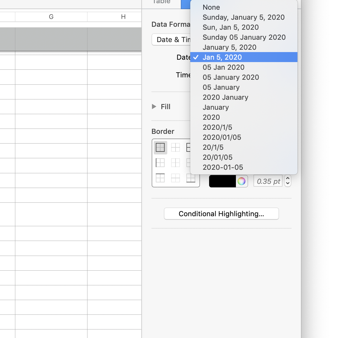 So, I am making a spreadsheet with 2019 sales/expenses etc... but the format option for auto filling cells with dates - or completing it when i type in partial like mar 14 should become march 14 2019 but it won't let me. It fills in 2020... I see no way to correct that. The auto options are all 2020... I shouldn't need to make the whole computer believe it is 2019 just to have the date for one column be 2019... am i missing something. The image shows the drop down for date under date & time<format. No place to choose or manually set dates