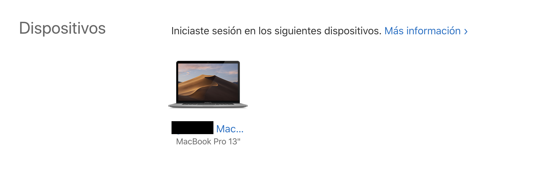 - Inside https://appleid.apple.com/ in the device section I can only see my Macbook pro.