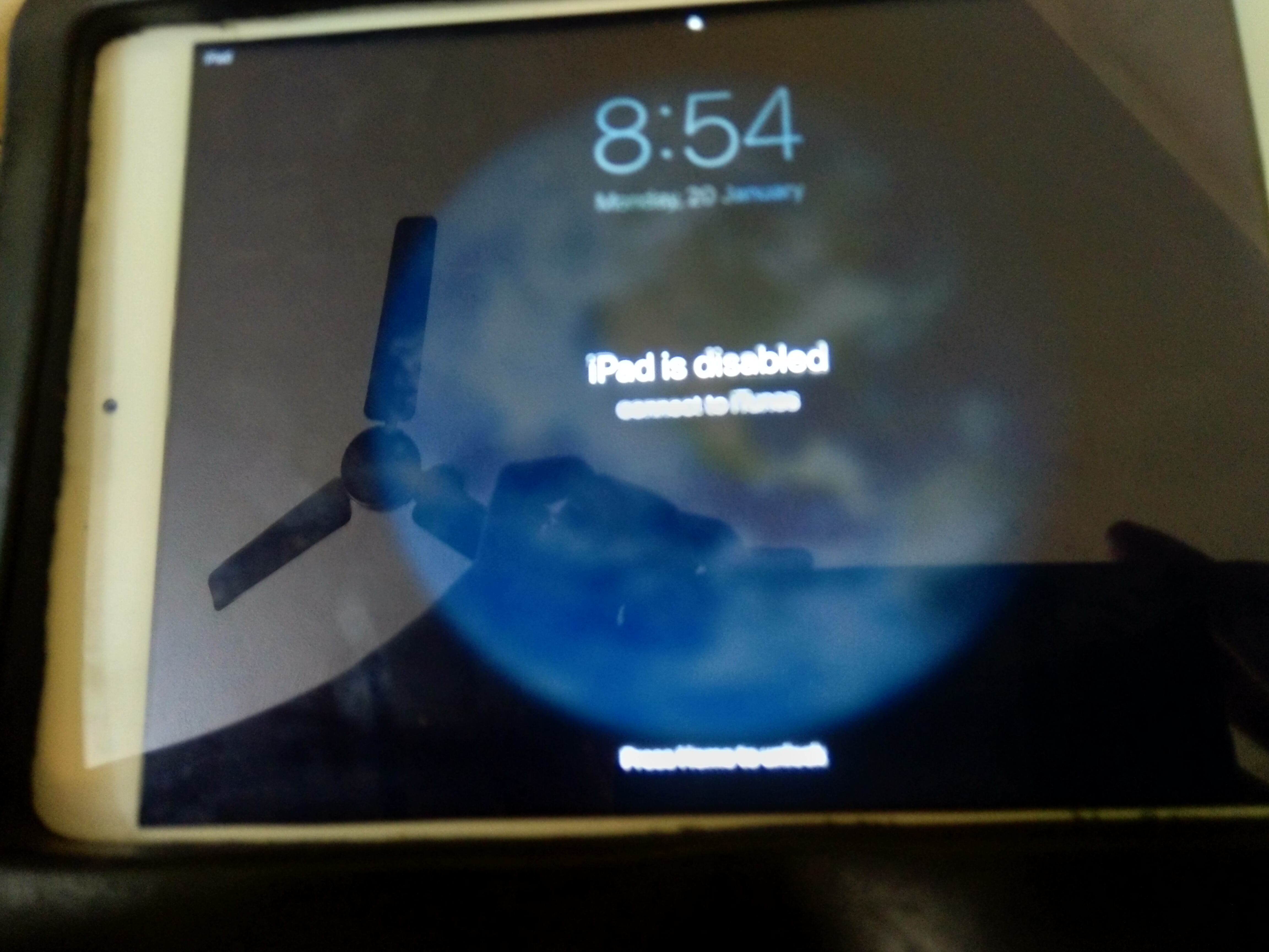 when i press the home button it just says "ipad is disabled connect to iTunes"