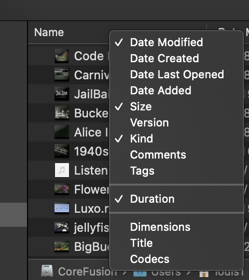 I asked this question when I got Mojave and got a very helpful couple of answers which suggested using list view. Since updating to Catlina the duration option seems to have disappeared from list view too. I'm currently resorting to sorting by size but this doesn't always equate to the actual duration of the video file. Any help would be gratefully received. Thanks.