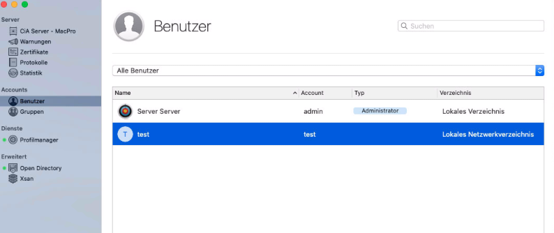The network account is entered in the Server Tool. Open Directory is also enabled as the Master. In the Directory Utility I can see that the network account is available. What I can see is, that the network account has no Kerberos Credentials setup, but the local user account has those.